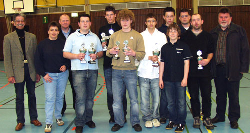 Überreicht wurden die Pokale vom stellv. Bezirksbundesmeister Heinz Weber, Bezirksjungschützenmeister Benedikt Schlösser, Bezirksschießmeister Markus Schröer und den beiden stellvertretenden Bezirksschießmeistern Ute Korte und Lothar Meier.